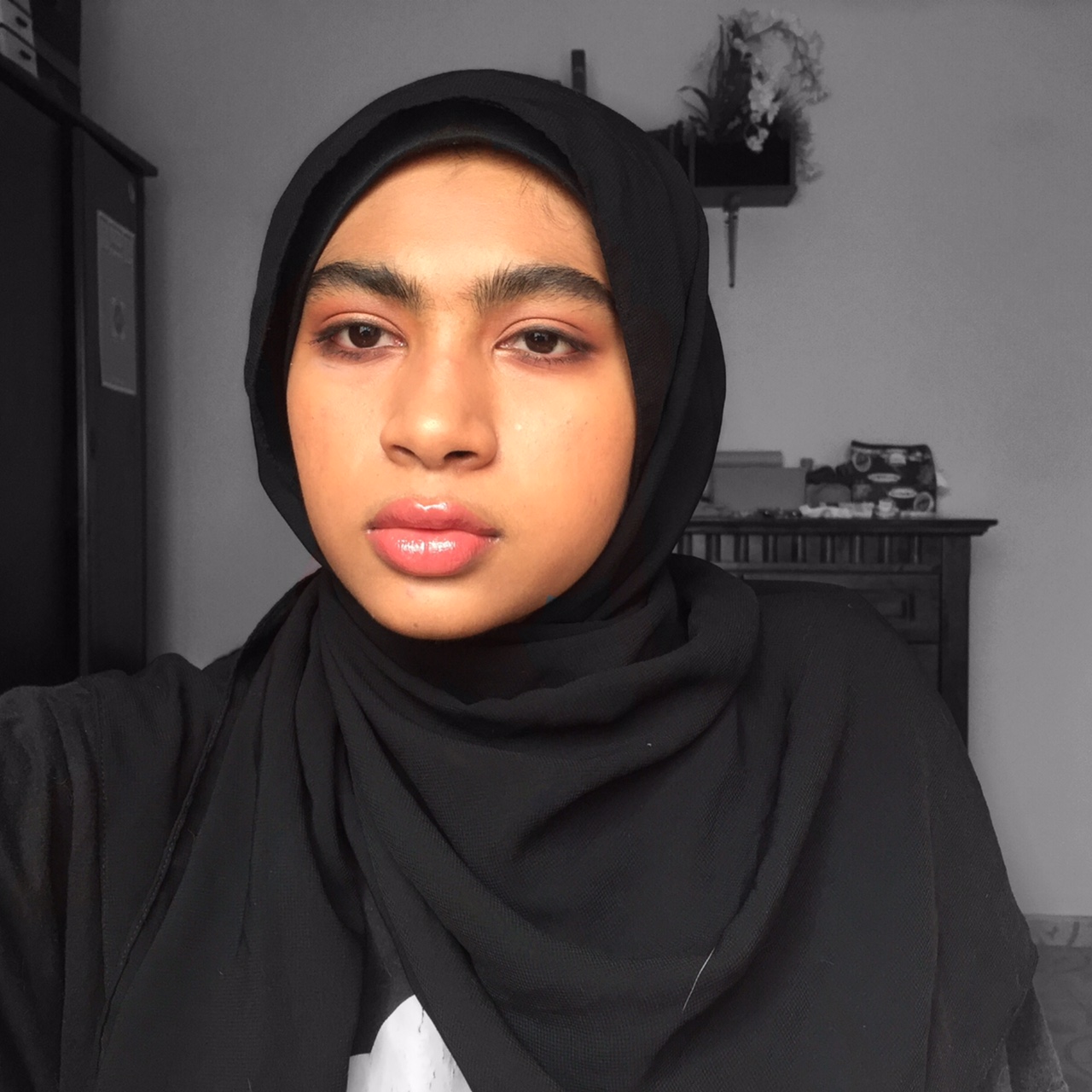 So first I use jasper as the base , I put it all over my lid and then I add citrine from the outward corner of my eye to my crease, and I use hermatite and bronzite and blend it on my crease using a blending brush then I take quartz using a tapered brush stating from the corner of my eye to the centre and using the blending brush and blend it out nicely . After that, i take obsidian and create a smudge liner on m upper lid . Finall I take hermatite,bronzite and obsidian for my lower lash line .
